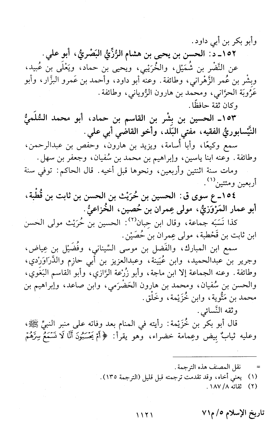 154 - ع سوى ق: الحسين بن حريث بن الحسن بن ثابت بن قطبة، أبو عمّار المَرْوَزِيّ، [الوفاة: 241 - 250 ه]