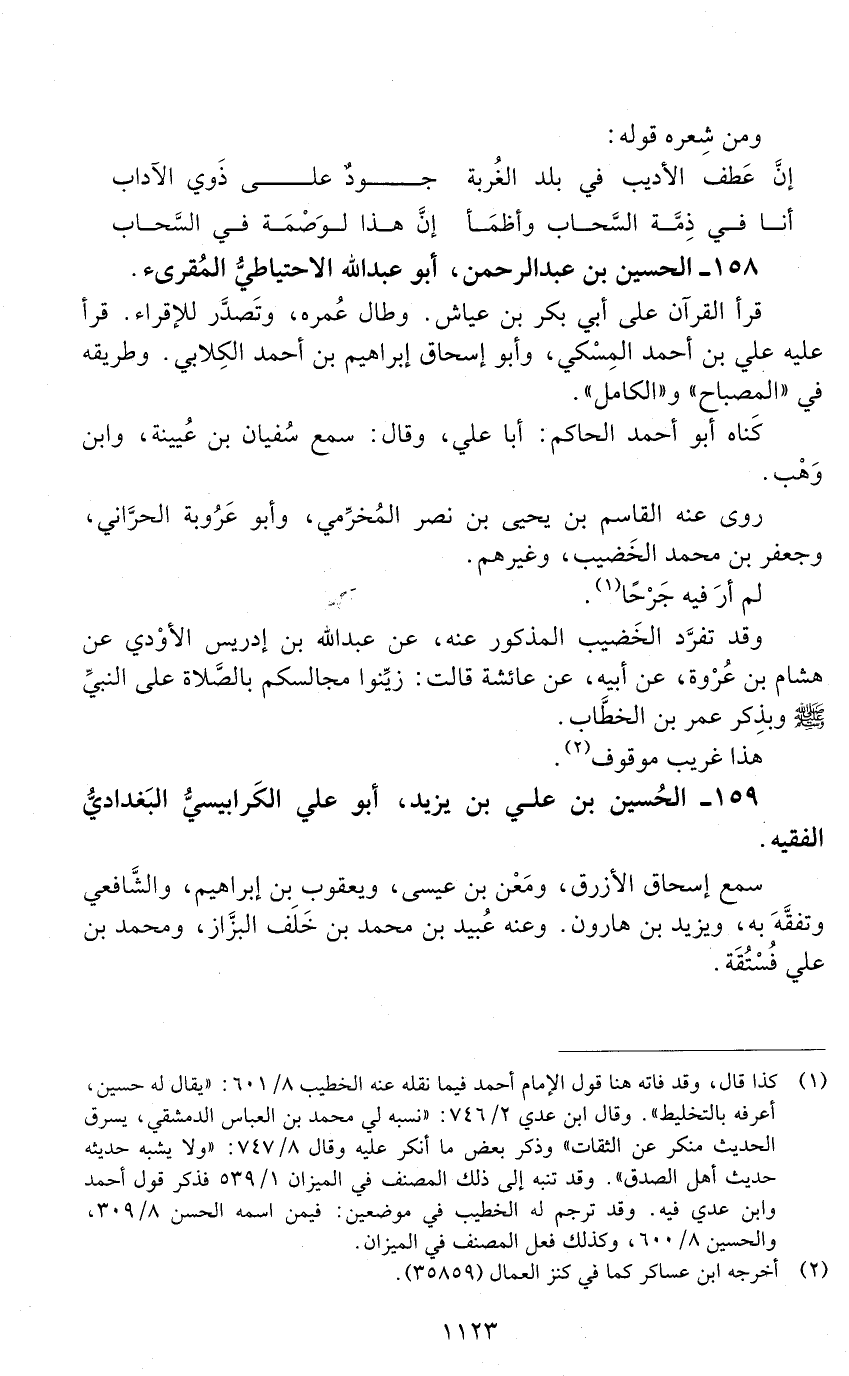 158 - الحسين بن عبد الرحمن، أبو عبد الله الاحتياطيّ المقرئ. [الوفاة: 241 - 250 ه]