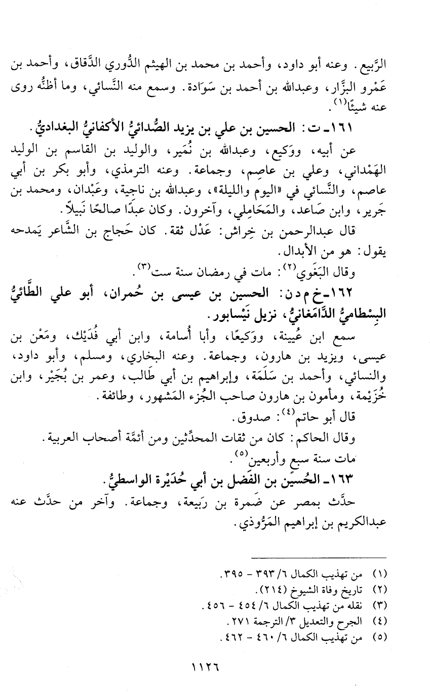 161 - ت: الحسين بن علي بن يزيد الصدائي الأكفاني، البَغْداديُّ. [الوفاة: 241 - 250 ه]