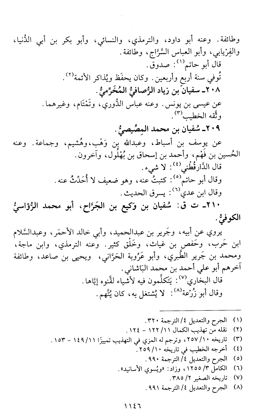 210 - ت ق: سُفْيَانُ بن وكيع بن الجرّاح، أبو محمد الرؤاسي الكُوفيُّ. [الوفاة: 241 - 250 ه]