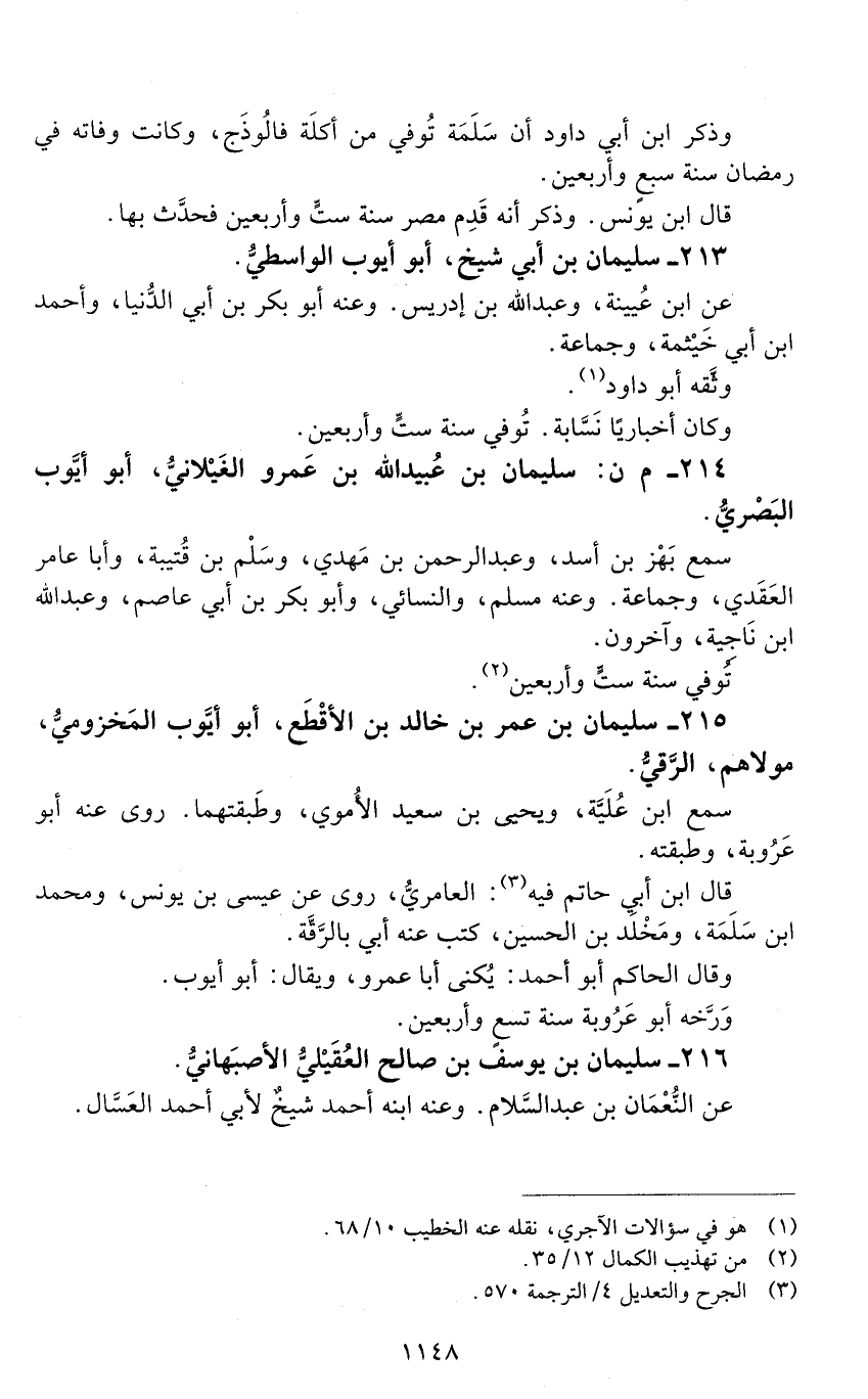 214 - م ن: سليمان بن عُبَيْد الله بن عَمْرو الغَيْلانيّ، أبو أيوب الْبَصْرِيُّ. [الوفاة: 241 - 250 ه]