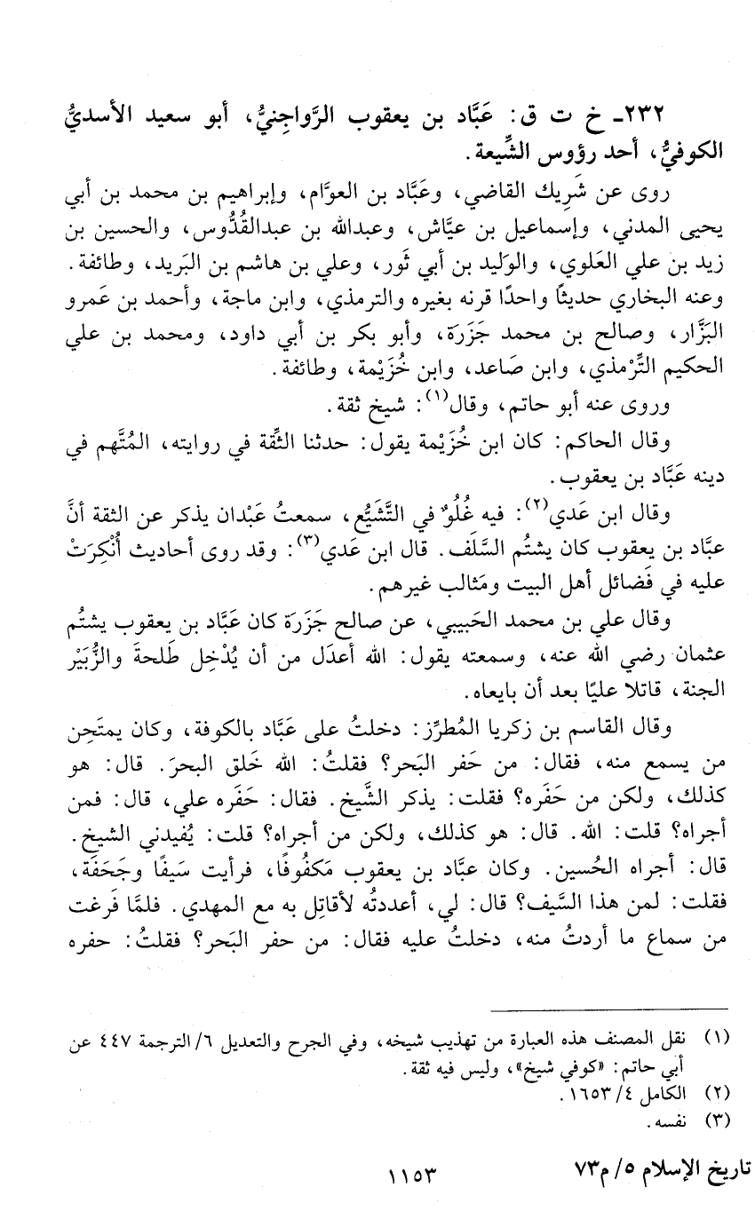 232 - خ ت ق: عبّاد بن يعقوب الرَّواجِنيّ، أبو سعيد الأَسَديّ الكُوفيُّ. [الوفاة: 241 - 250 ه]