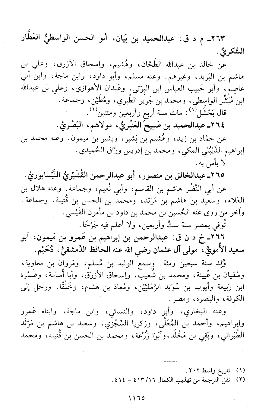 263 - م د ق: عبد الحميد بن بيان، أبو الحَسَن الواسطيُّ العطَّار السُّكّريُّ. [الوفاة: 241 - 250 ه]