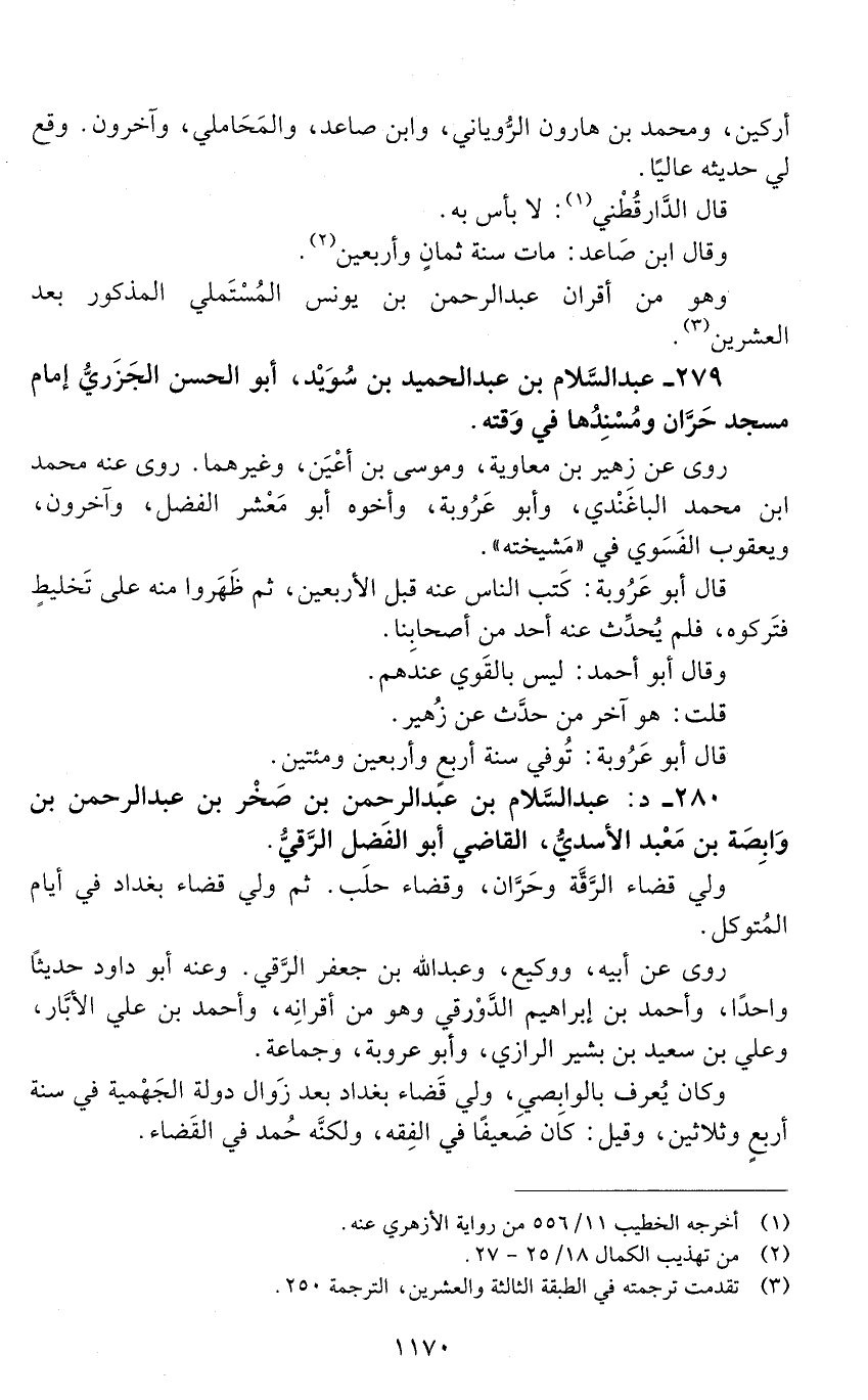 280 - د: عبد السّلام بن عبد الرحمن بن صَخْر بن عبد الرحمن بن وابصة بن معْبد الأسدي، القاضي أبو الفضل الرقي. [الوفاة: 241 - 250 ه]