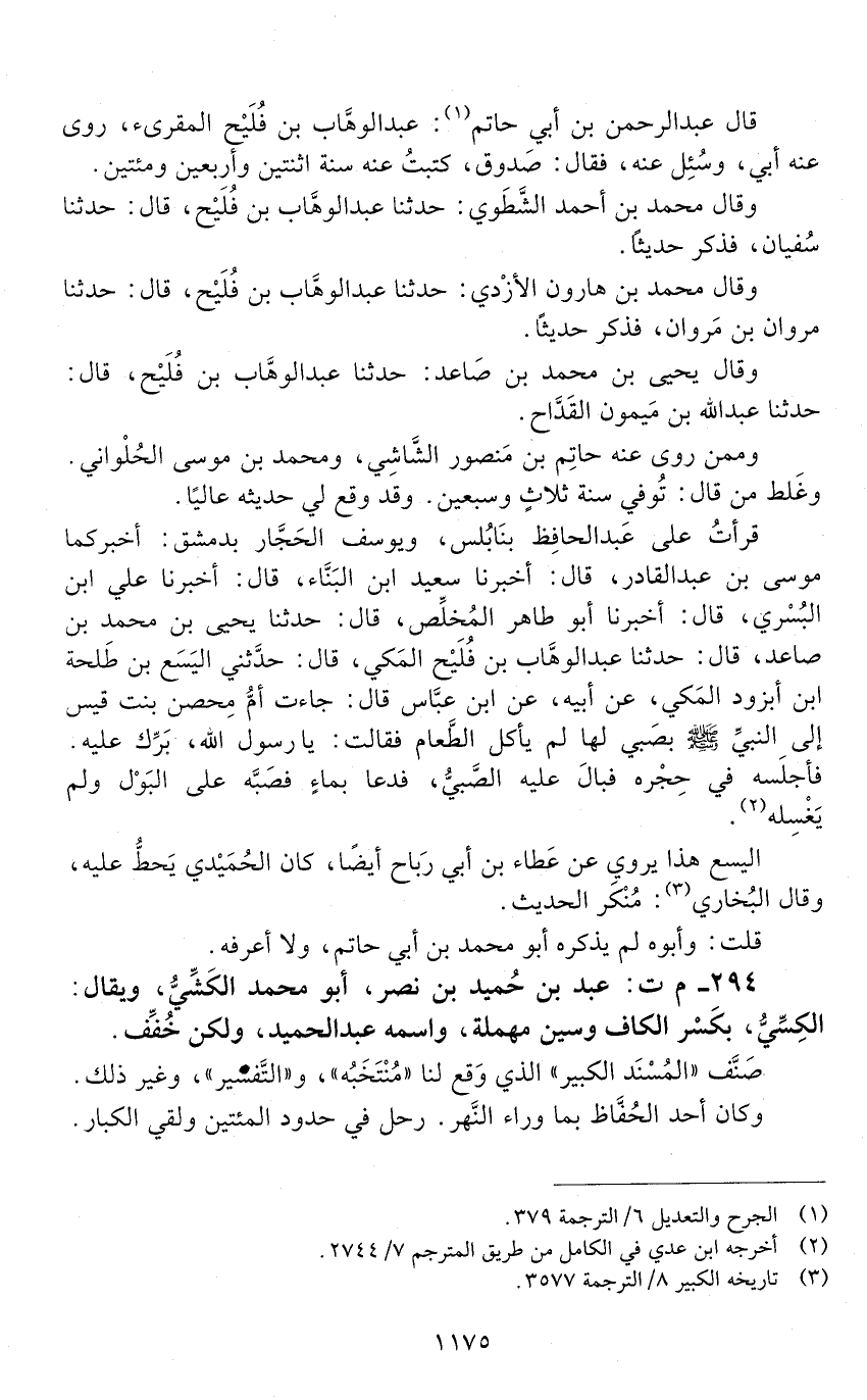 294 - م ت: عبد بن حميد بن نصر، أبو محمد الكشي، ويقال: الكسي بكسْر الكاف وسين مهملة. واسمه عبد الحميد، ولكن خُفِّف. [الوفاة: 241 - 250 ه]