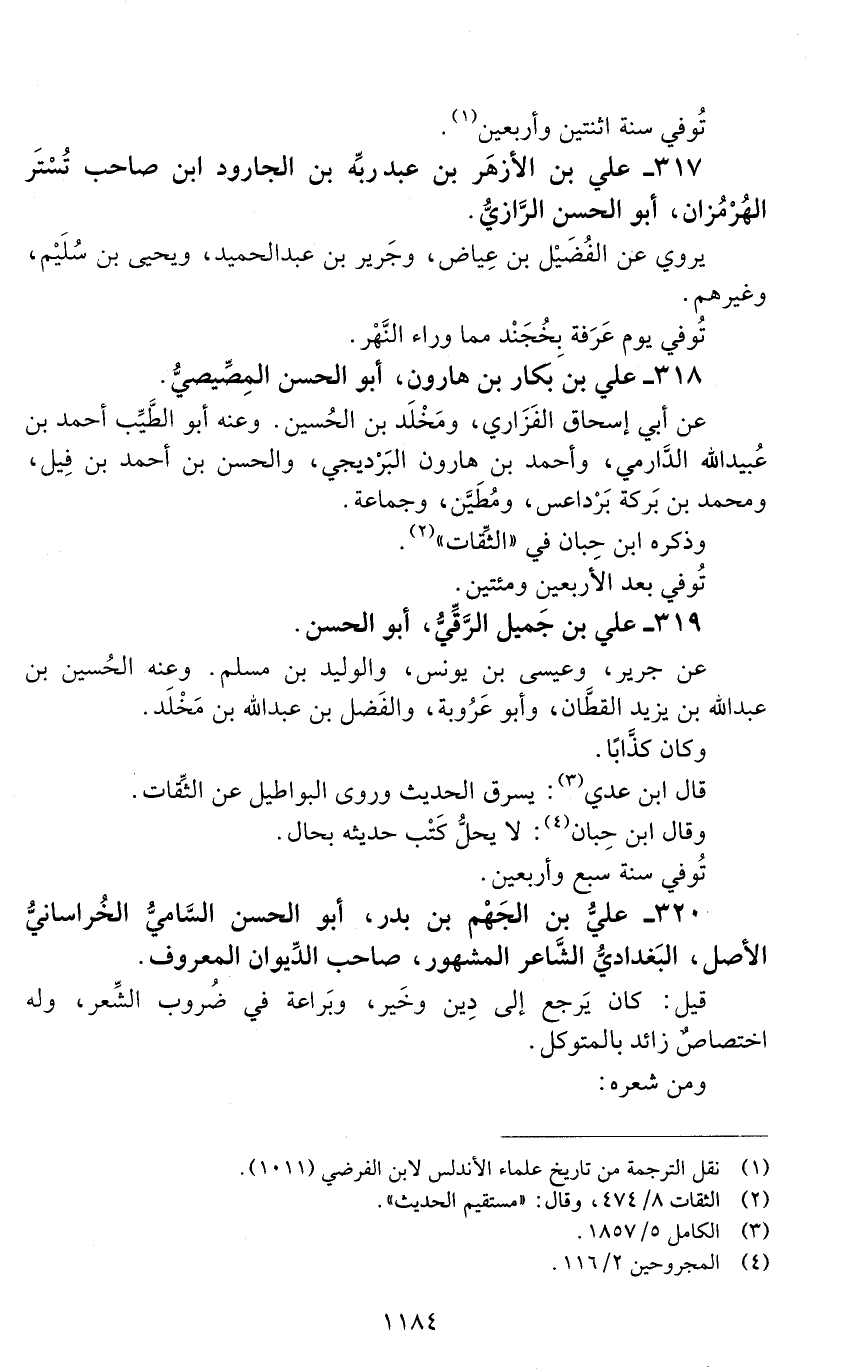 320 - عليّ بن الْجَهْم بن بدر، أبو الحَسَن السّاميّ الخُراسانيّ الأصل. البَغْداديُّ الشّاعر المشهور، [الوفاة: 241 - 250 ه]