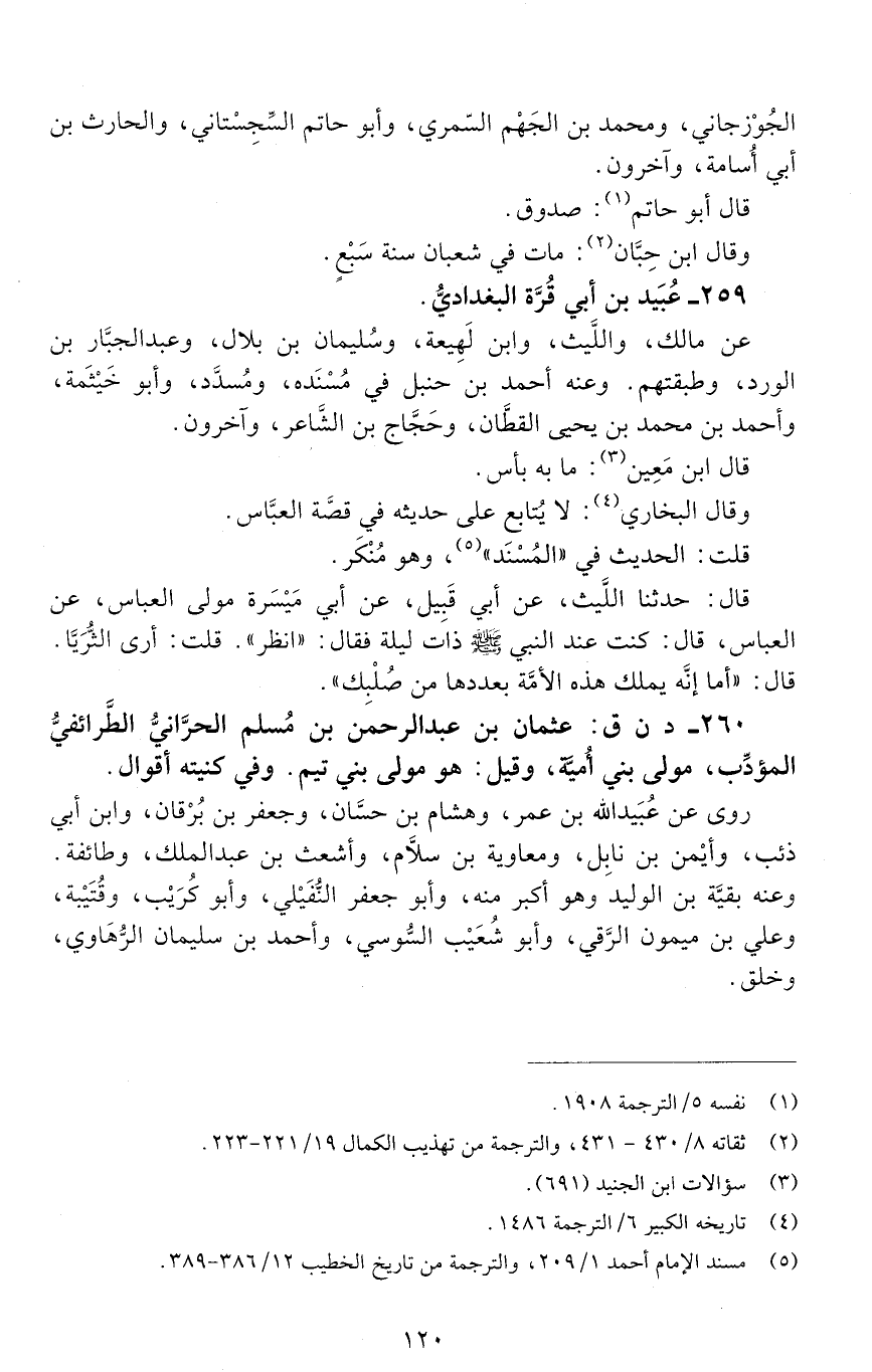 260 - د ن ق: عثمان بْن عَبْد الرَّحْمَن بْن مُسْلِم الحرّانيّ الطرائفي المؤدِّب، [الوفاة: 201 - 210 ه]