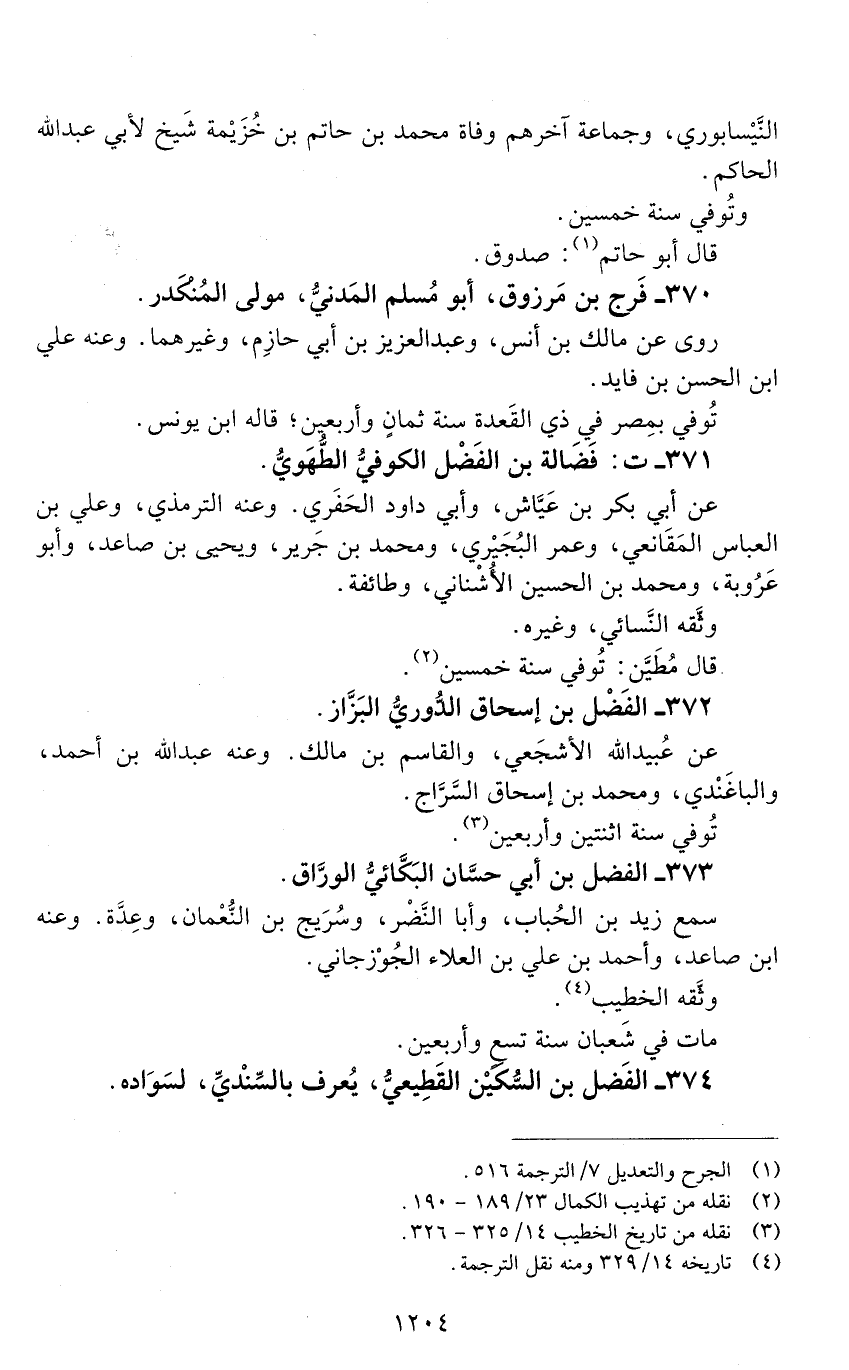 371 - ت: فضالة بن الفضل الكُوفيُّ الطهوي. [الوفاة: 241 - 250 ه]