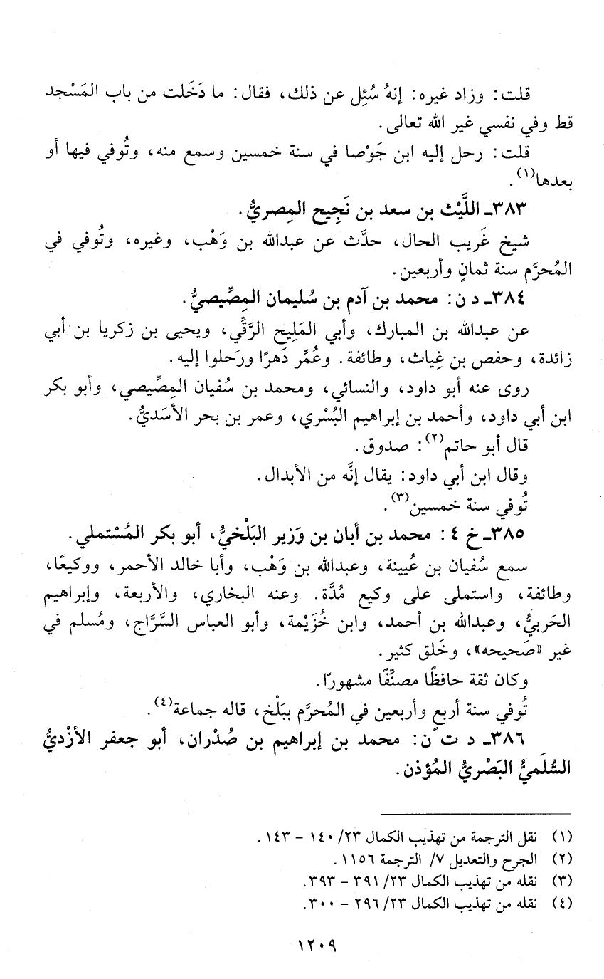 383 - اللَّيث بن سعد بن نَجِيح المِصْريُّ. [الوفاة: 241 - 250 ه]