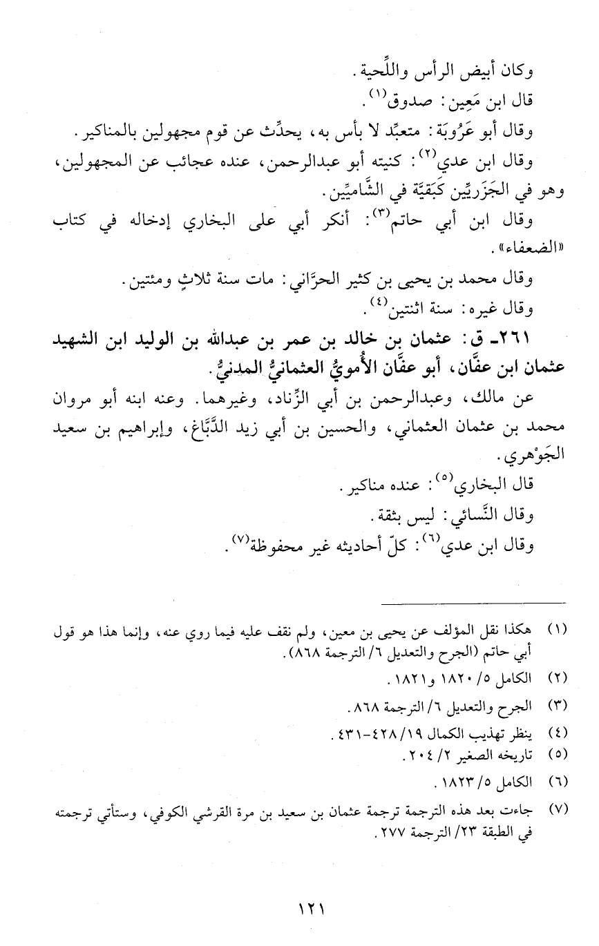 261 - ق: عثمان بن خالد بن عمر بن عبد الله بن الوليد ابن الشهيد عثمان بْن عفان، أبو عفان الأُمَويّ العُثْمانيّ الْمَدَنِيّ. [الوفاة: 201 - 210 ه]