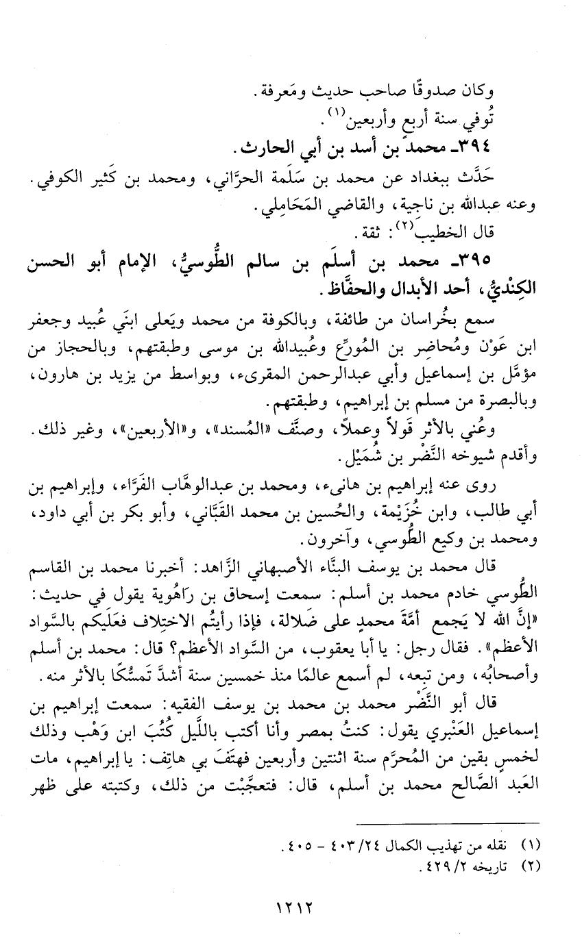 395 - محمد بن أسلم بن سالم الطُّوسيّ، الإمام أبو الحَسَن الكِنْديّ، [الوفاة: 241 - 250 ه]