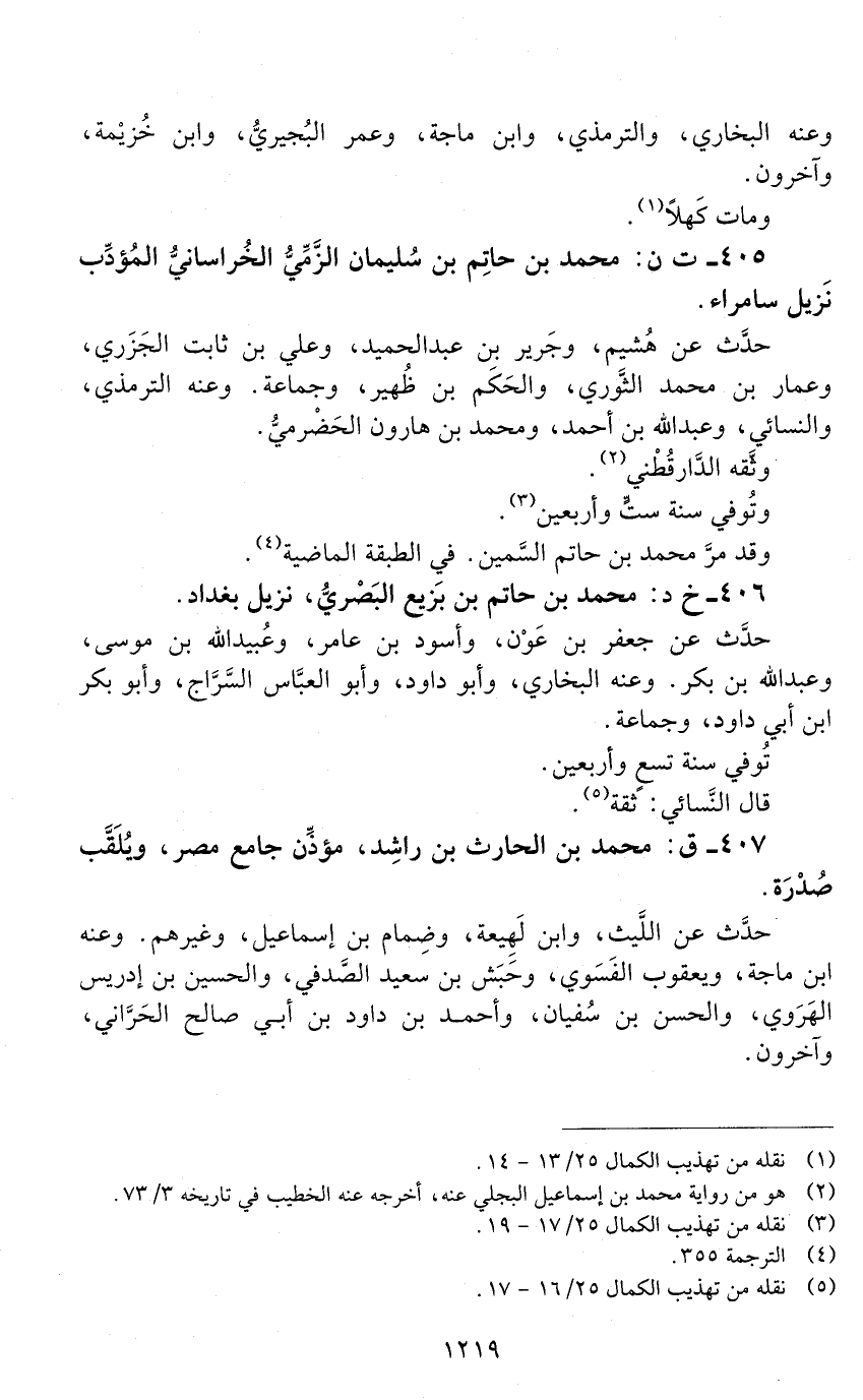 405 - ت ن: محمد بن حاتم بن سُليمان الزَّمِّيُّ الخُرَاسانيُّ المؤدِّب [الوفاة: 241 - 250 ه]