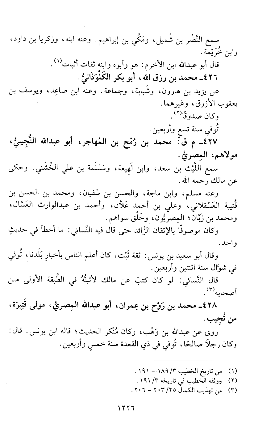 427 - م ق: محمد بن رُمْح بن المهاجر، أبو عبد الله التجيبي، مولاهم المِصْريُّ. [الوفاة: 241 - 250 ه]