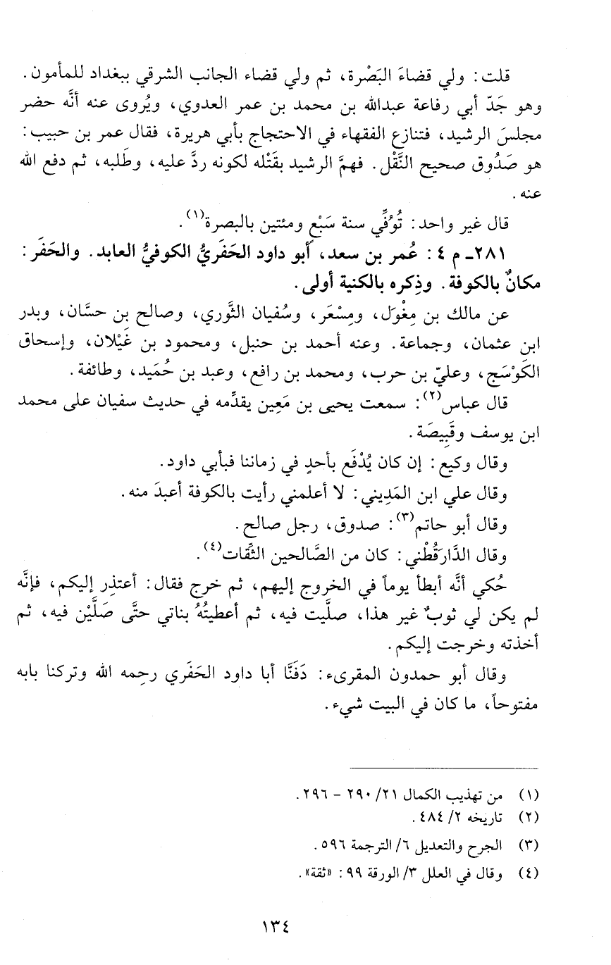 281 - م 4: عُمَر بْن سعْد أبو داود الحَفَريّ الكُوفيُّ العابد، [الوفاة: 201 - 210 ه]