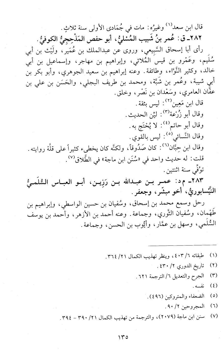 282 - ق: عُمَر بْن شبيب المُسْليّ، أبو حفص المَذْحِجِيّ الكُوفيُّ. [الوفاة: 201 - 210 ه]