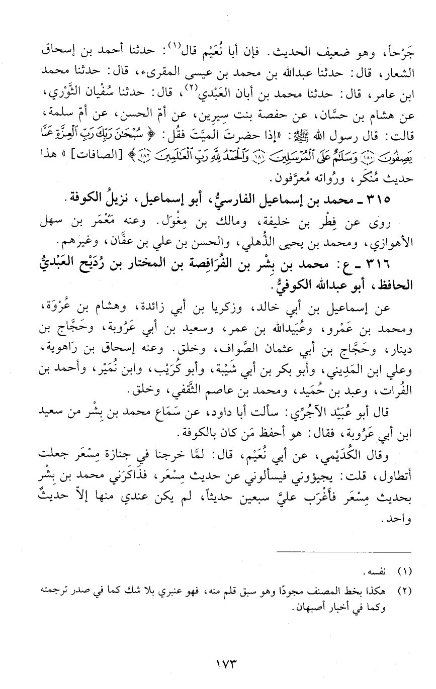 316 - ع: محمد بْن بِشْر بْن الفَرَافِصَة بْن المختار بْن رُدَيْح العبْديّ الحافظ، أبو عَبْد اللَّه الكُوفيُّ. [الوفاة: 201 - 210 ه]
