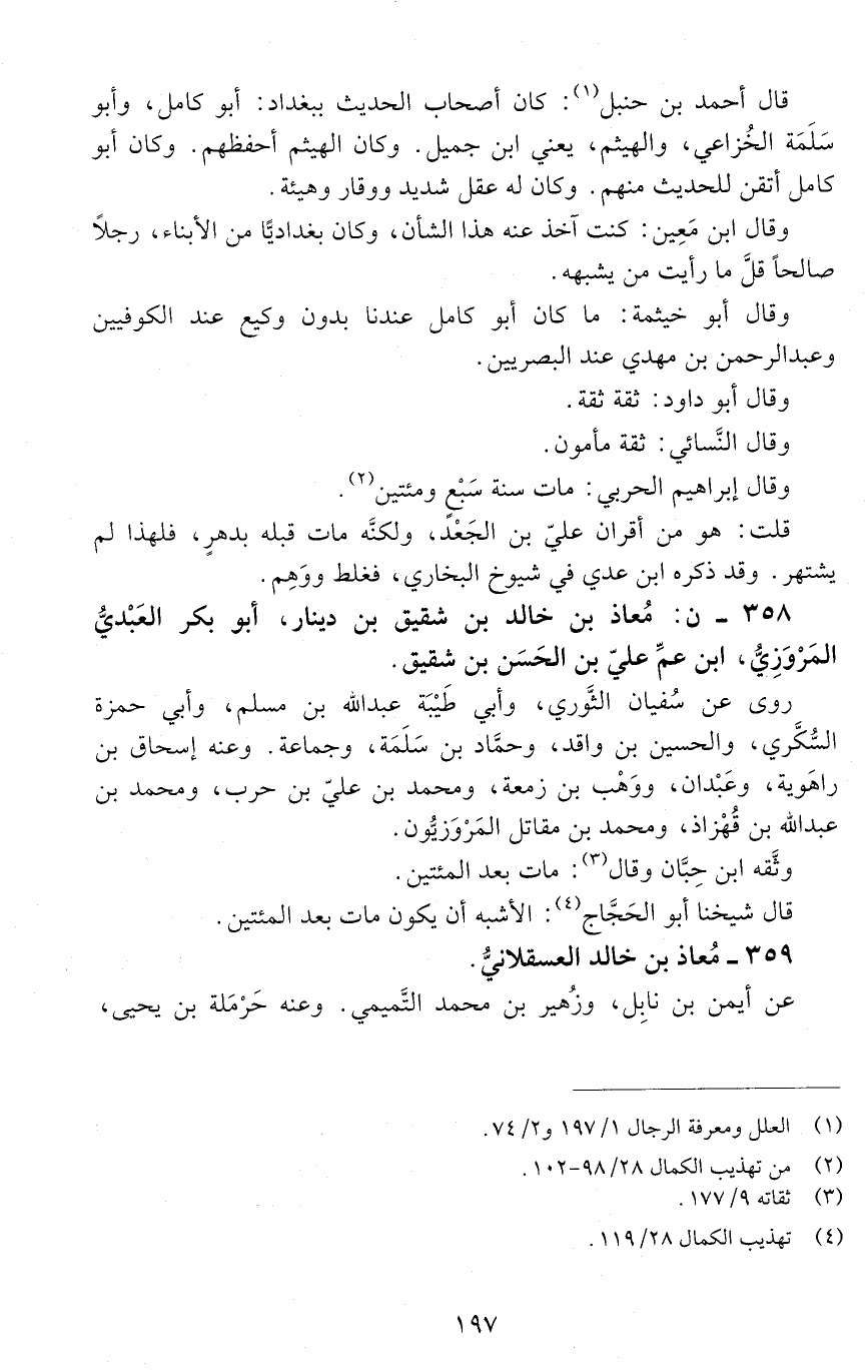 358 - ن: مُعَاذ بْن خَالِد بْن شقيق بْن دينار، أبو بكر العَبْديُّ المَرْوَزيُّ، [الوفاة: 201 - 210 ه]