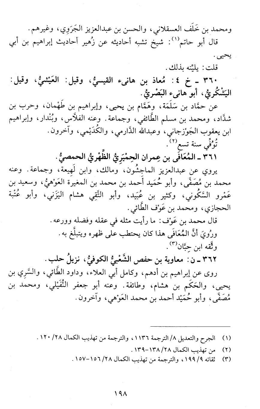 361 - الْمُعَافَى بْن عِمران الحِمْيَريّ الظهري الحمصيّ. [الوفاة: 201 - 210 ه]