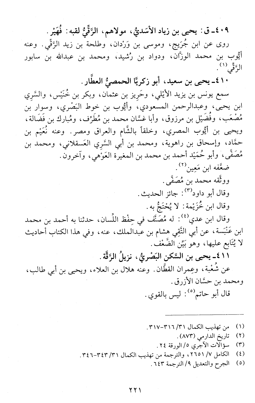 410 - يحيى بْن سَعِيد، أبو زكريّا الحمصي العطار. [الوفاة: 201 - 210 ه]