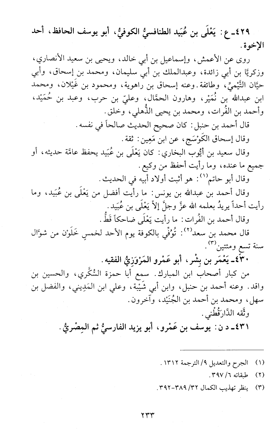 429 - ع: يَعْلَى بْن عُبَيْد الطنافسي الكُوفيُّ، أبو يوسف الحافظ، أحد الإخوة. [الوفاة: 201 - 210 ه]
