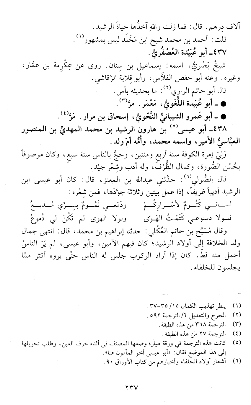 438 - أبو عيسى بْن هارون الرشيد بْن محمد المهديّ بْن المنصور العبّاسيّ الأمير. واسمه محمد، [الوفاة: 201 - 210 ه]