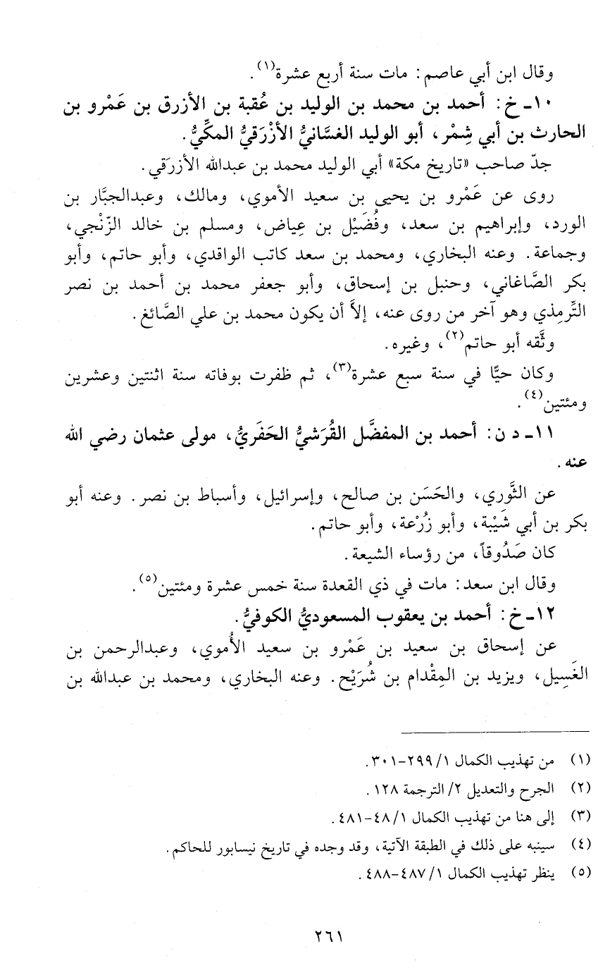 10 - خ: أحمد بن محمد بن الوليد بن عُقبة بن الأزرق بن عَمْرو بن الحارث بن أبي شَمِر، أبو الوليد الغساني الأزْرَقيّ المكّيّ. [الوفاة: 211 - 220 ه]