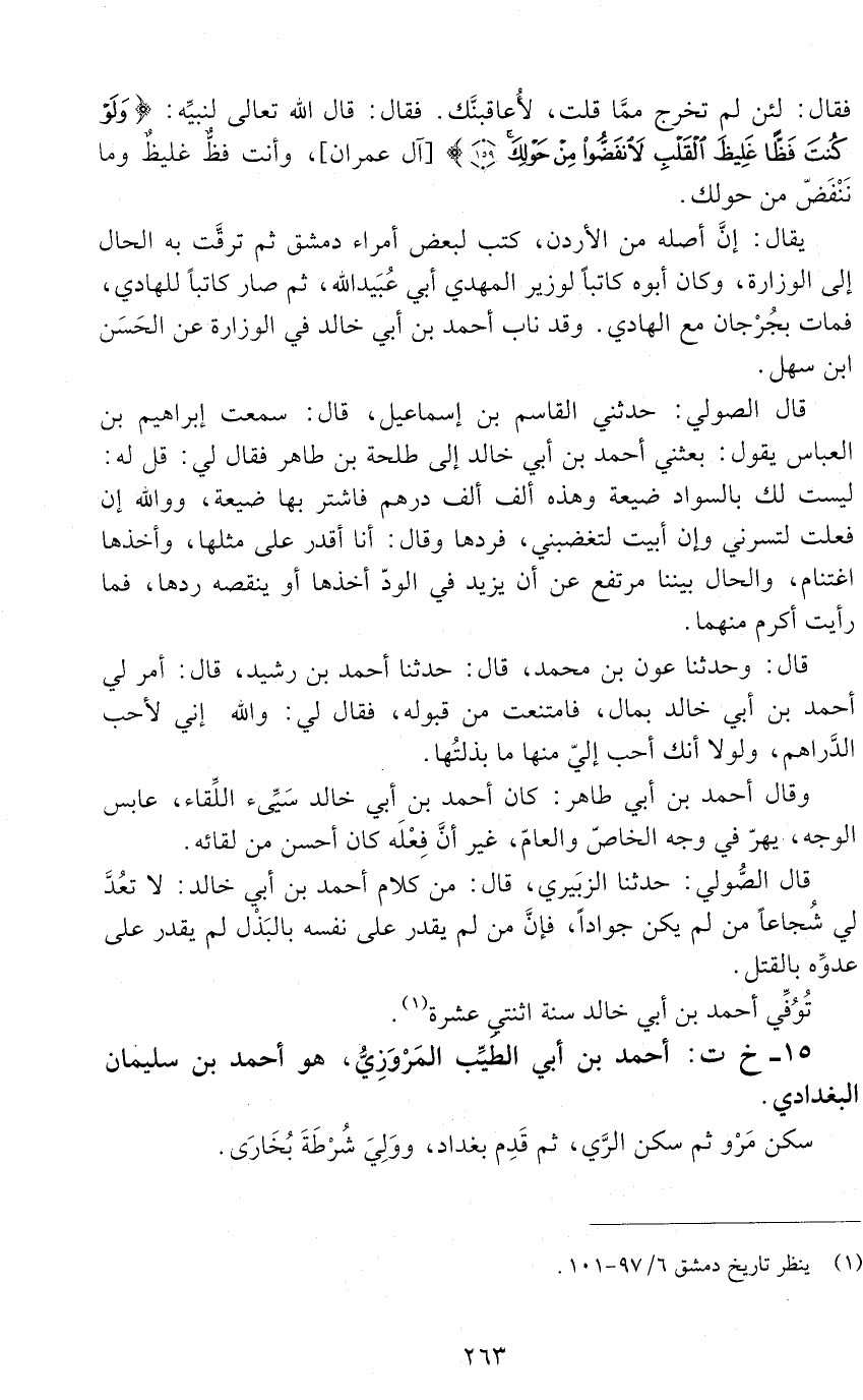 15 - خ ت: أحمد بن أبي الطيب المروزي، هو أحمد بن سليمان البَغْداديُّ. [الوفاة: 211 - 220 ه]
