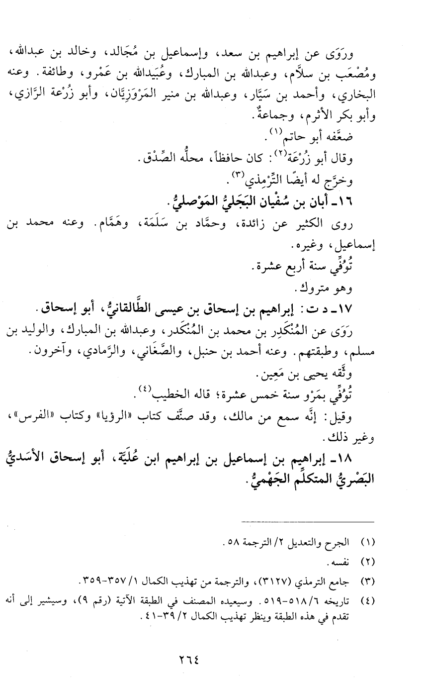 18 - إبراهيم بن إسماعيل بن إبراهيم ابن عُلَيَّة، أبو إسحاق الأَسَديّ البَصْريُّ المتكلّم الْجَهْميّ. [الوفاة: 211 - 220 ه]-[265]-