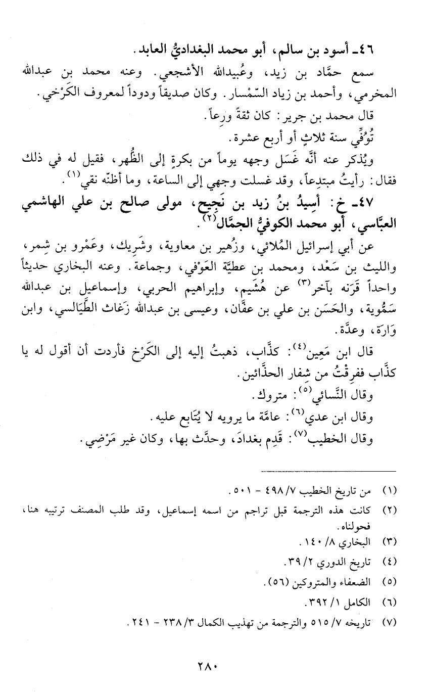 47 - خ: أسيد بن زيد بن نجيح، مولى صالح بن علي الهاشمي العباسي، أبو محمد الكُوفيُّ الجمَّال. [الوفاة: 211 - 220 ه]