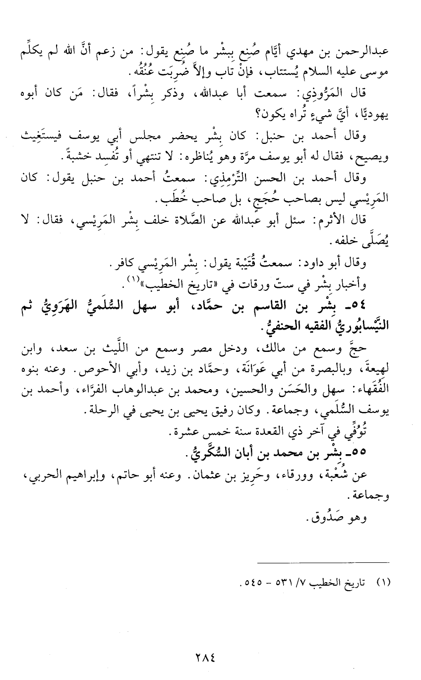 54 - بشر بن القاسم بن حمّاد، أبو سهل السُّلَميّ الهَرَوِيّ ثم النَّيْسابُوريّ، الفقيه الحنفيّ. [الوفاة: 211 - 220 ه]