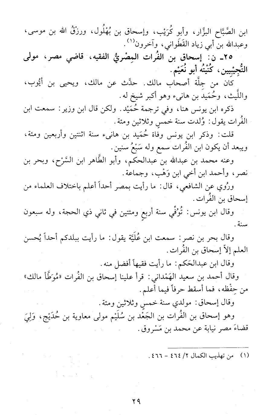 25 - ن: إسحاق بن الفُرات المِصْريُّ الفقيه، قاضي مصر، مولى التُّجَيْبِيّين: كُنْيته أبو نُعَيْم. [الوفاة: 201 - 210 ه]
