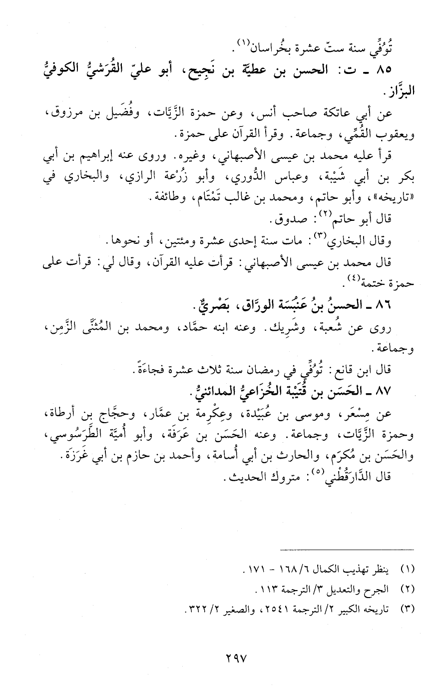 85 - ت: الحسن بن عطيّة بن نَجِيح، أبو عليّ القرشي الكُوفيُّ البزاز. [الوفاة: 211 - 220 ه]