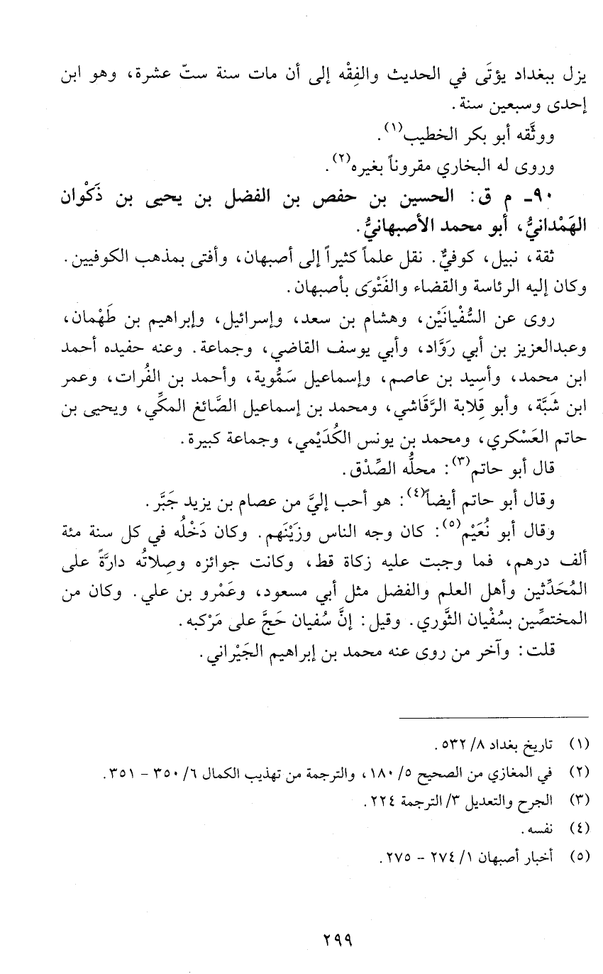 90 - م ق: الحسين بن حفص بن الفضل بن يحيى بن ذكوان الهمداني، أبو محمد الأصبهاني. [الوفاة: 211 - 220 ه]