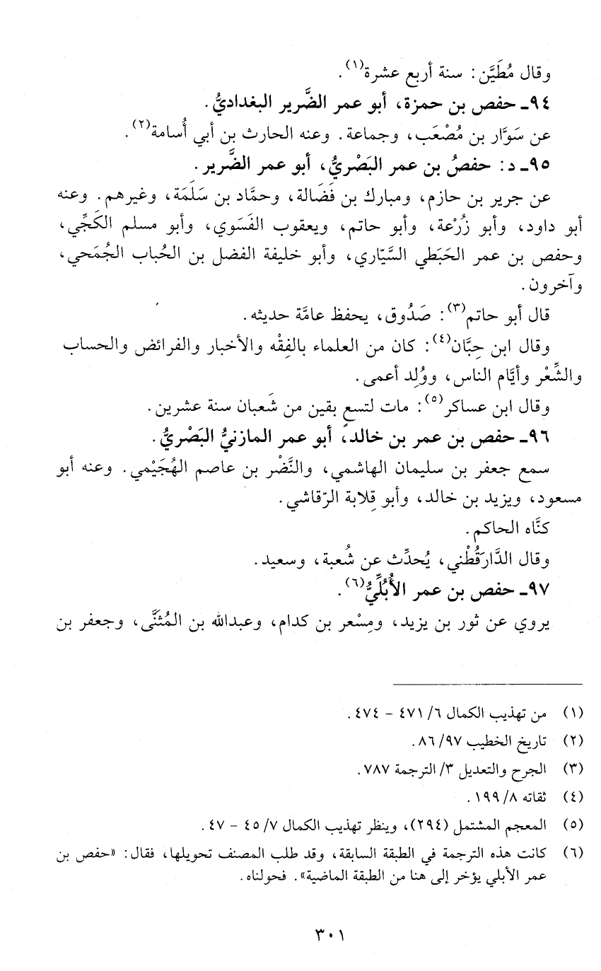 96 - حفص بن عمر بن خالد، أبو عمر المازنيّ البَصْريُّ. [الوفاة: 211 - 220 ه]