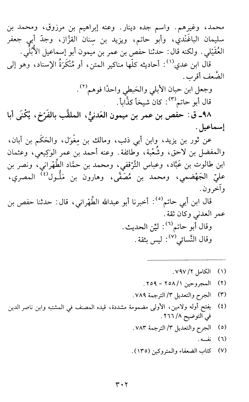 98 - ق: حفص بن عمر بن ميمون العَدنيّ الملقّب بالفَرْخ، يُكَنَّى أبا إسماعيل. [الصَّنْعانيُّ] [الوفاة: 211 - 220 ه]