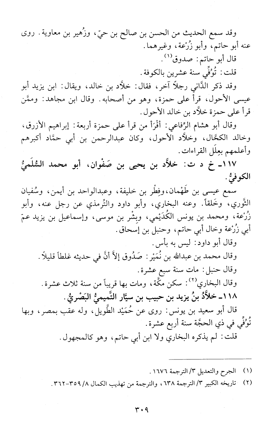 117 - خ د ت: خلاد بن يحيى بن صَفْوان، أبو محمد السُّلَميّ الكُوفيُّ. [الوفاة: 211 - 220 ه]
