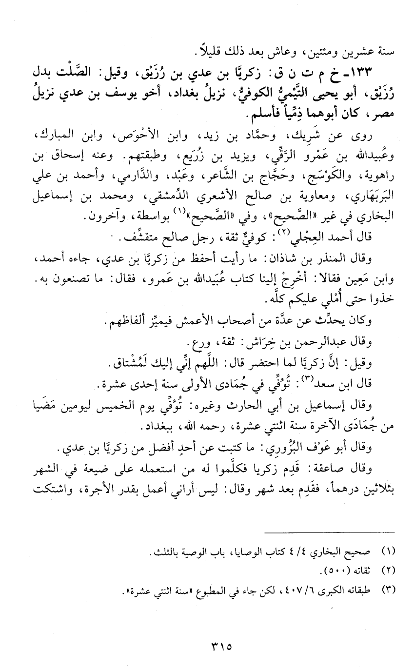 133 - خ م ت ن ق: زكريا بن عدي بن رزيق، وقيل: الصلت؛ بدل رزيق. أبو يحيى التيمي الكُوفيُّ، [الوفاة: 211 - 220 ه]