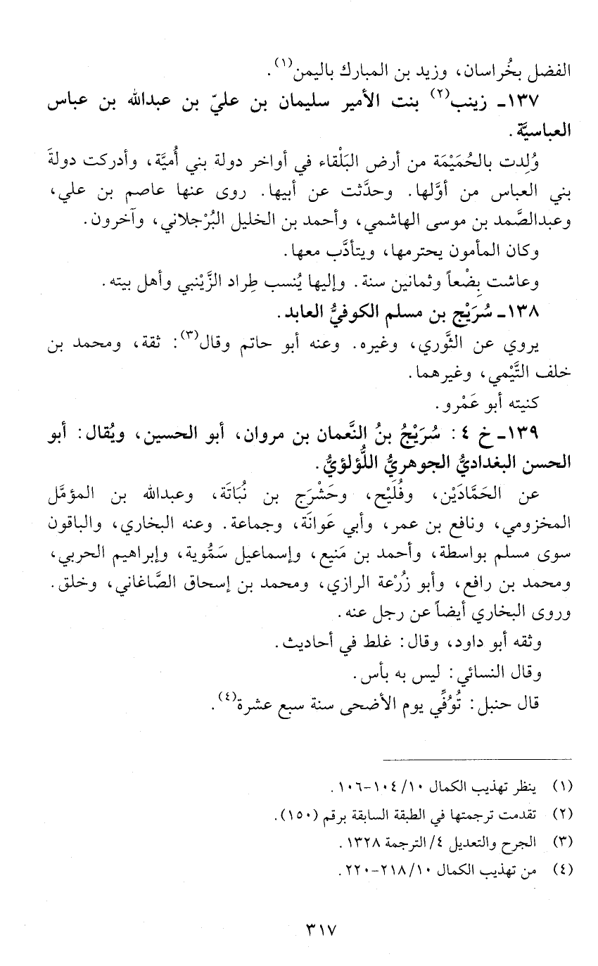 139 - خ 4: سريج بن النعمان بن مروان، أبو الحسين، ويقال: أبو الحسن البَغْداديُّ الجوهري اللؤلؤي. [الوفاة: 211 - 220 ه]