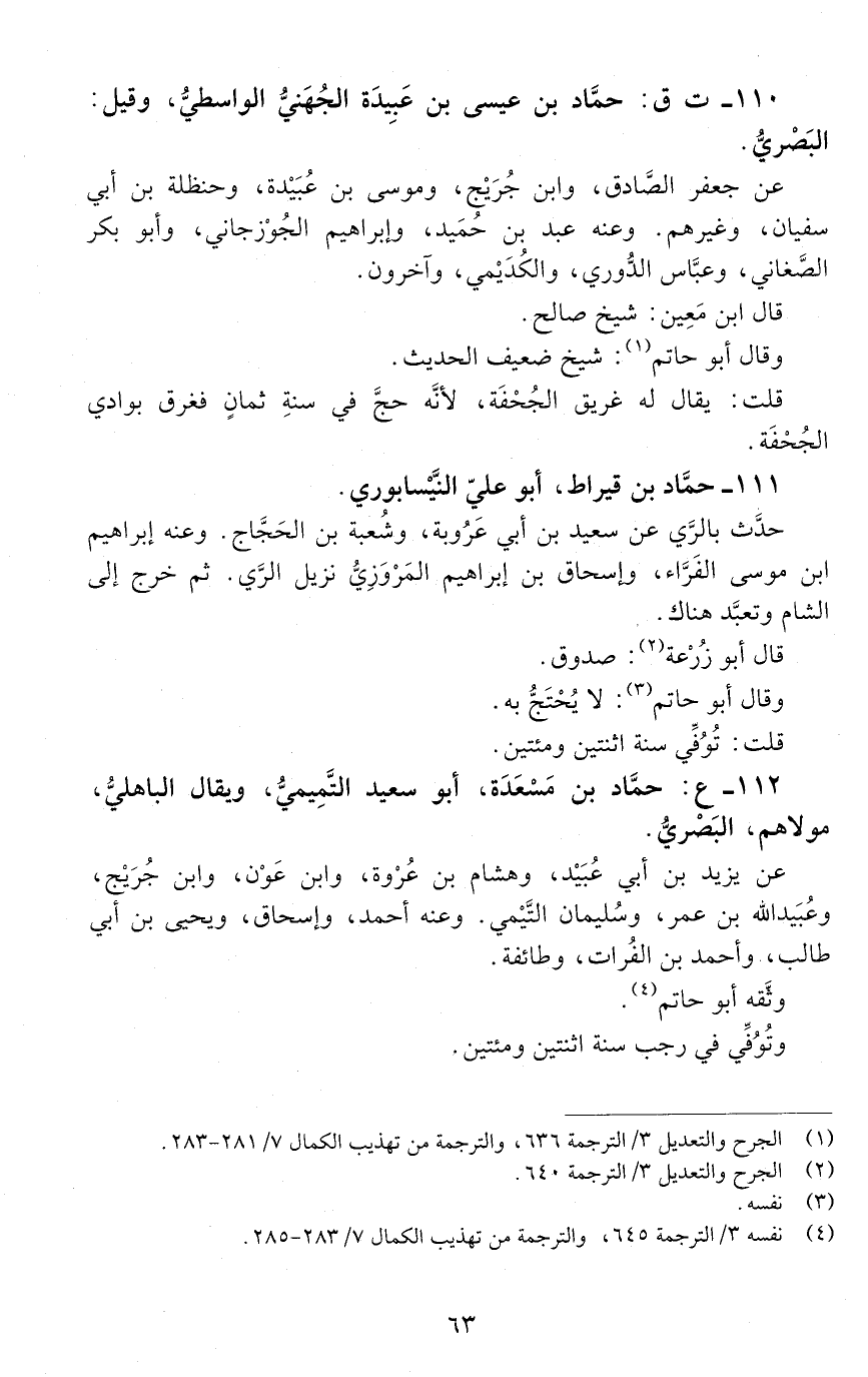 112 - ع: حمَّاد بْن مَسْعَدَة، أبو سَعِيد التَّمِيميّ، ويقال: الباهليُّ، مولاهم، الْبَصْرِيُّ. [الوفاة: 201 - 210 ه]