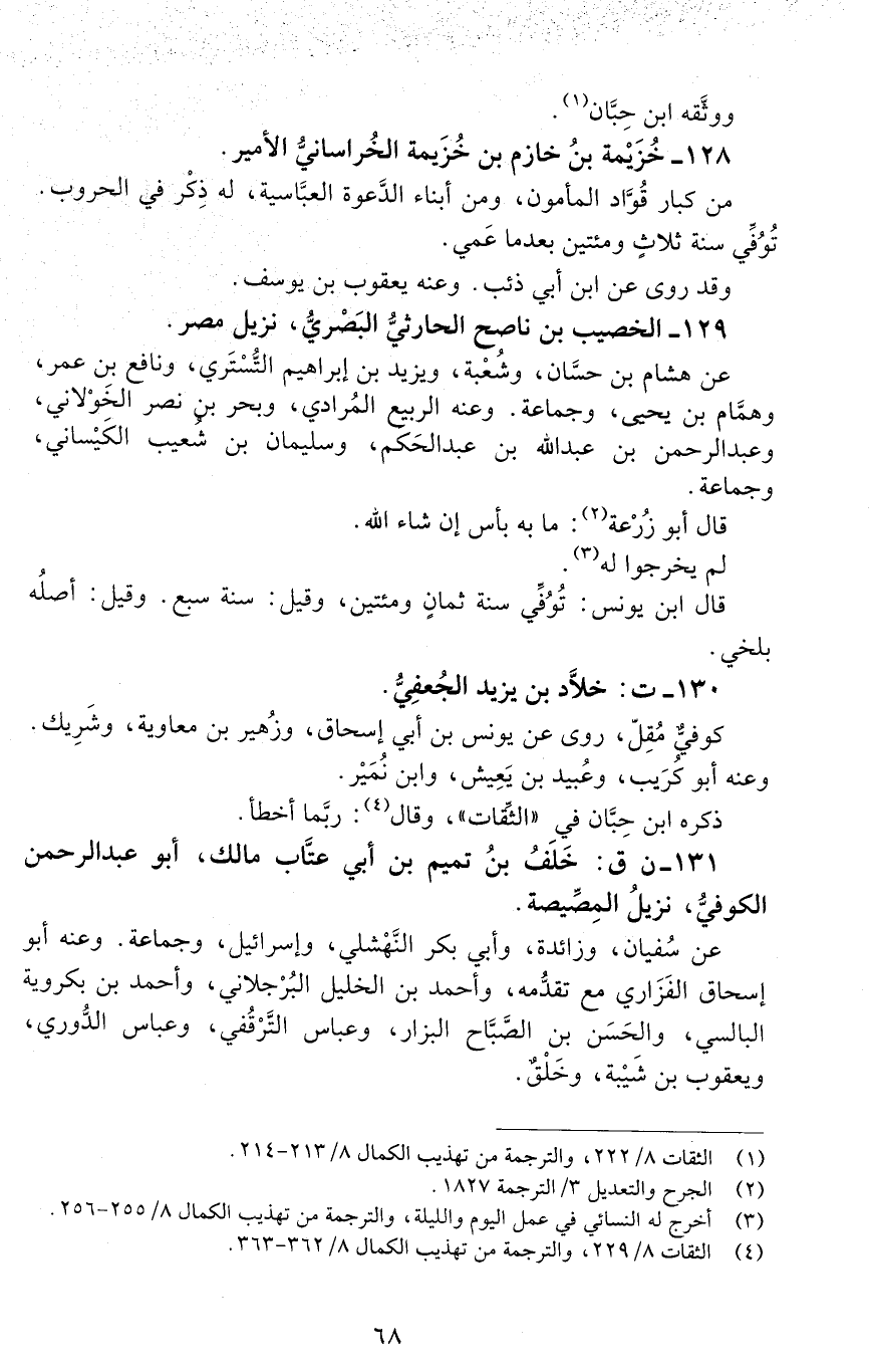 130 - ت: خلاد بْن يزيد الْجُعْفيّ. [الوفاة: 201 - 210 ه]