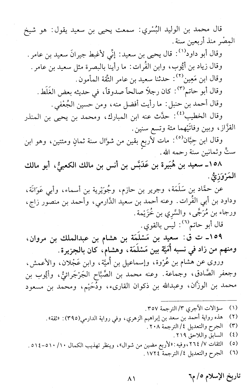 158 - سعيد بن هبيرة بن عدبس بْن أنس بْن مالك الكَعْبيّ أبو مالك المَرْوَزِيّ. [الوفاة: 201 - 210 ه]