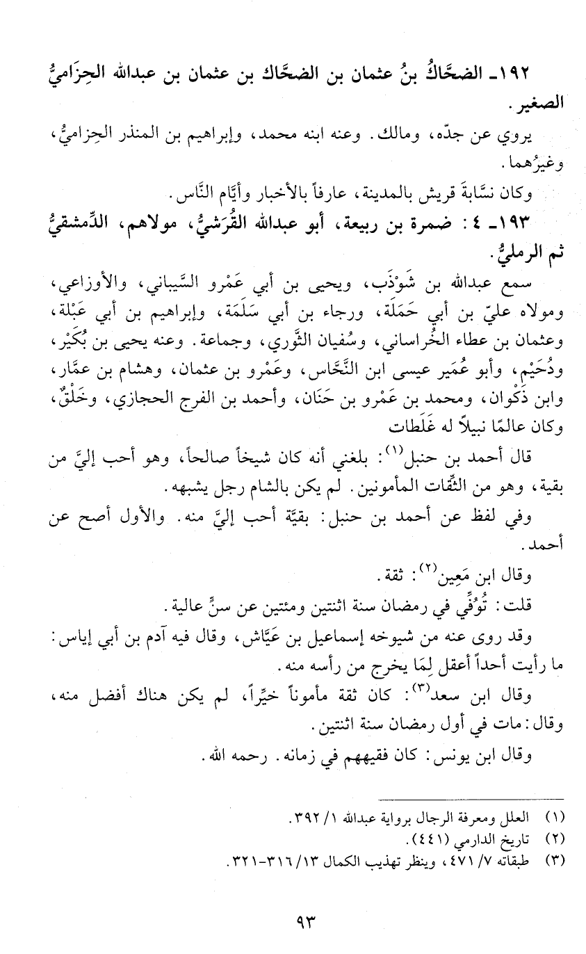 193 - 4: ضَمْرَةُ بْن ربيعة، أبو عَبْد اللَّه الْقُرَشِيّ مولاهم الدِّمشقيُّ ثمّ الرَّمْليّ. [الوفاة: 201 - 210 ه]