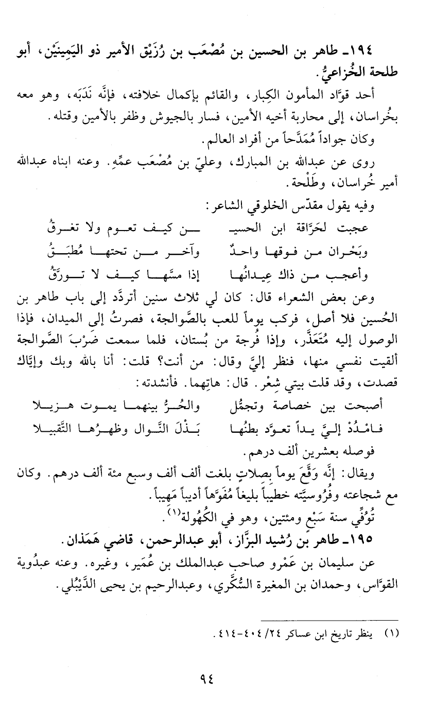 194 - طاهر بن الحسين بن مصعب بن رزيق الأمير ذو اليَمِينَيْن، أبو طلحة الخُزاعيّ. [الوفاة: 201 - 210 ه]