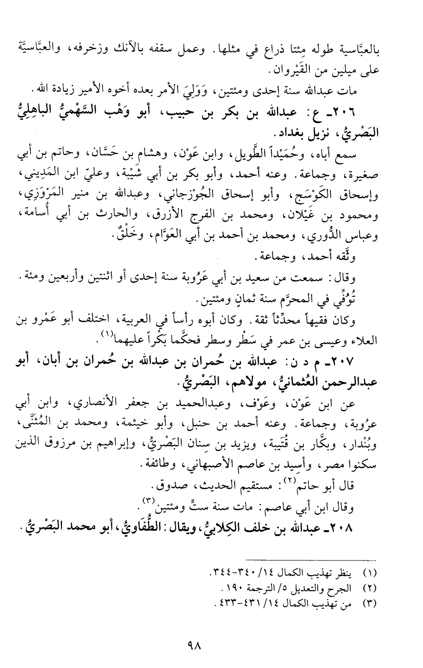 206 - ع: عَبْدُ اللَّه بْنُ بَكْرِ بْنِ حَبيب، أبو وهب السهمي الباهلي الْبَصْرِيُّ. [الوفاة: 201 - 210 ه]
