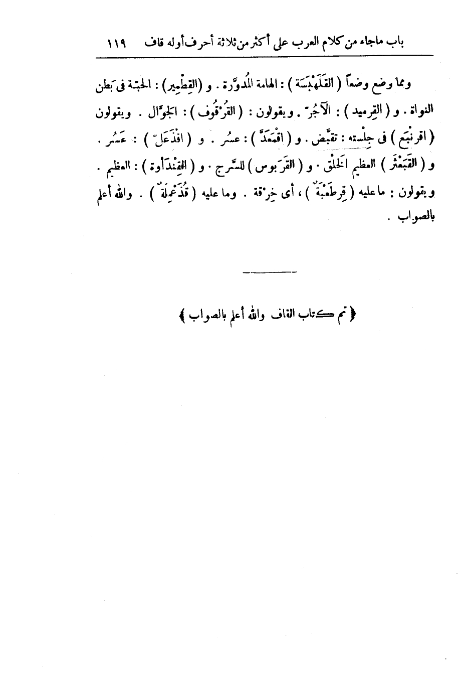 (تَمَّ كِتَابُ الْقَافِ وَاللَّهُ أَعْلَمُ بِالصَّوَابِ) .