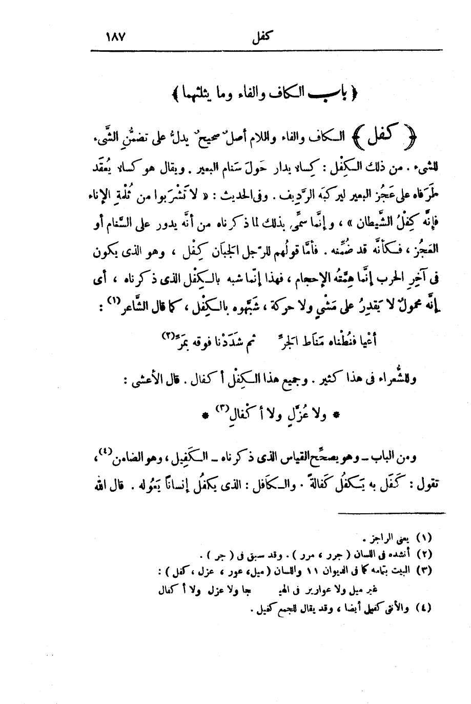وَلِلشُّعَرَاءِ فِي هَذَا كَثِيرٌ. وَجَمِيعُ هَذَا الْكِفْلِ أَكْفَالٌ. قَالَ الْأَعْشَى: