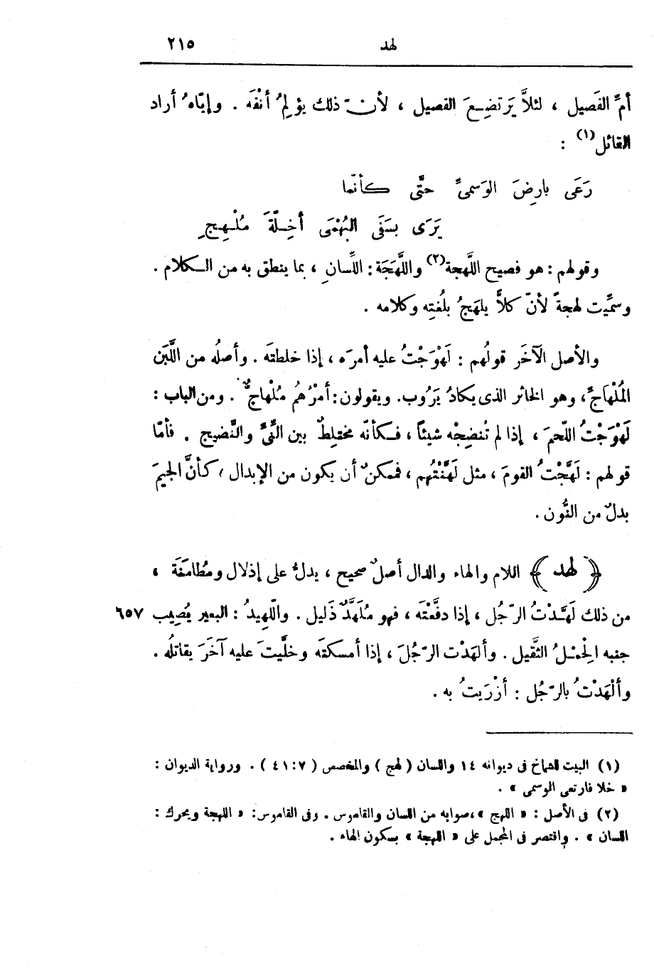 وَقَوْلُهُمْ: هُوَ فَصِيحُ اللَّهْجَةِ وَاللَّهَجَةِ: اللِّسَانُ، بِمَا يَنْطِقُ بِهِ مِنَ الْكَلَامِ. وَسُمِّيَتْ لَهْجَةً لِأَنَّ كُلًّا يَلْهَجُ بِلُغَتِهِ وَكَلَامِهِ.