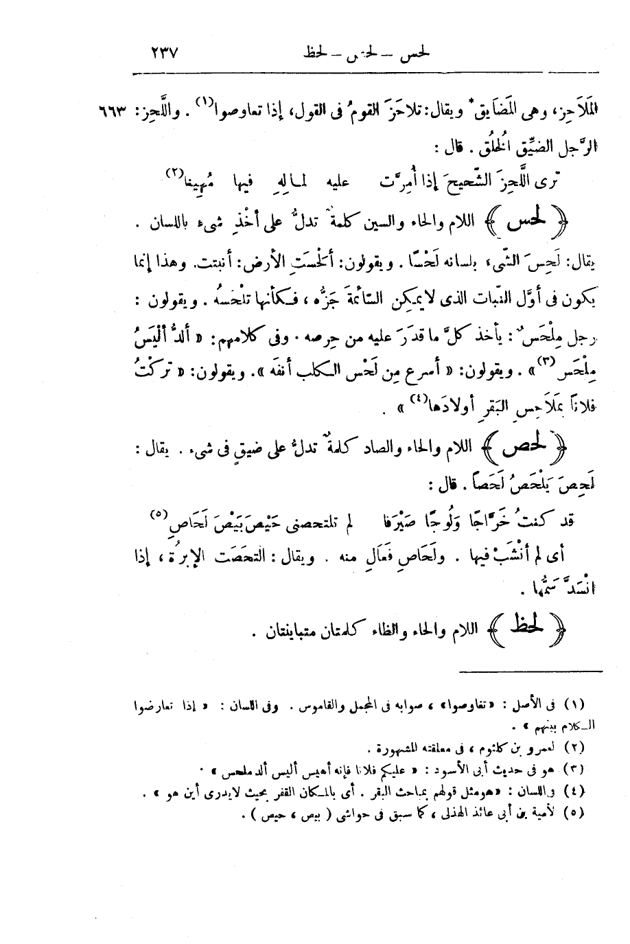قَدْ كُنْتُ خَرَّاجًا وَلُوجًا صَيْرَفًا ... لَمْ تَلْتَحِصْنِي حَيْصَ بَيْصَ لَحَاصِ