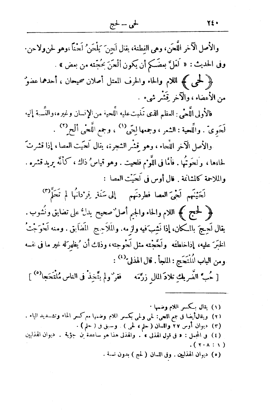 وَالْأَصْلُ الْآخَرُ اللَّحَنُ، وَهِيَ الْفِطْنَةُ، يُقَالُ لَحِنَ يَلْحَنُ لَحْنًا، وَهُوَ لَحِنٌ وَلَاحِنٌ. وَفِي الْحَدِيثِ: " «لَعَلَّ بَعْضَكُمْ أَنْ يَكُونَ أَلْحَنَ بِحُجَّتِهِ مِنْ بَعْضٍ» ".