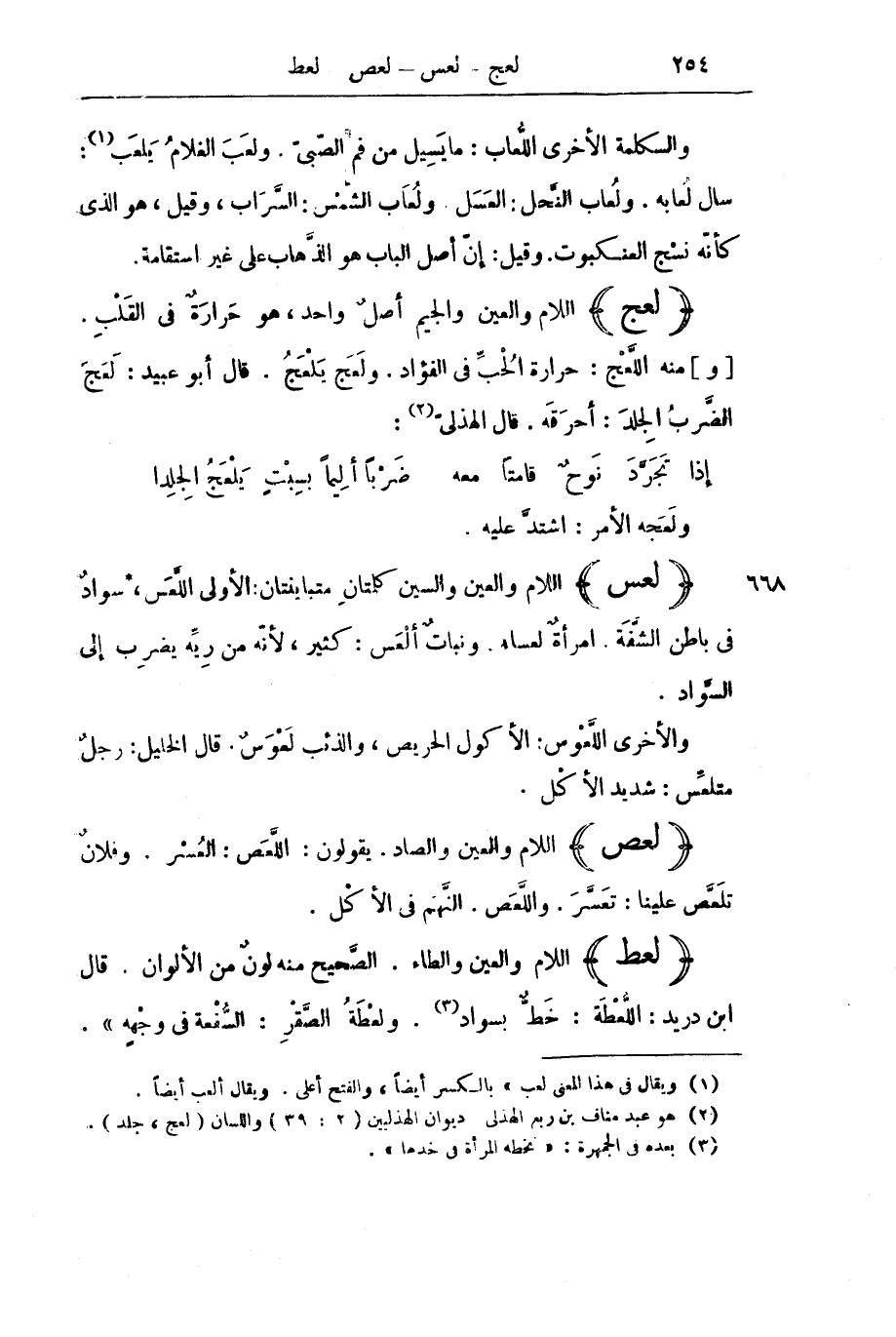 (لَعَجَ) اللَّامُ وَالْعَيْنُ وَالْجِيمُ أَصْلٌ وَاحِدٌ، هُوَ حَرَارَةٌ فِي الْقَلْبِ. [وَ] مِنْهُ اللَّعْجُ: حَرَارَةُ الْحُبِّ فِي الْفُؤَادِ. وَلَعَجَ يَلْعَجُ. قَالَ أَبُو عَبِيدٍ: لَعَجَ الضَّرْبُ الْجِلْدَ: أَحْرَقَهُ. قَالَ الْهُذَلِيُّ:
